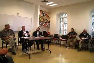 On October 8th, The Interfaith Center for Sustainable Development (ICSD) held a panel at the Jerusalem Intercultural Center of Christian, Jewish, and Muslim religious personalities speaking on coexistence and faith in the Holy Land. This was the second of three panel events that ICSD is organizing for groups from Travcoa/ Diesenhaus Unitours. ICSD held a similar panel in March, 2013, and will hold another in late October. The panel was comprised of Reverend Timothy Lowe, Dr. Ali Khamis, and Rabbi Yonatan Neril.